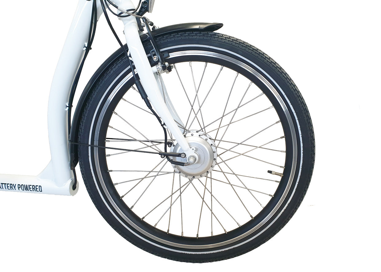 Cyklen er udstyret med elektrisk-hjælpemotor som er monteret i forhjulet. Motoren giver dig meget medvind i hverdagen og gør det let som en leg at transportere dig selv og dine indkøb fra A-B.